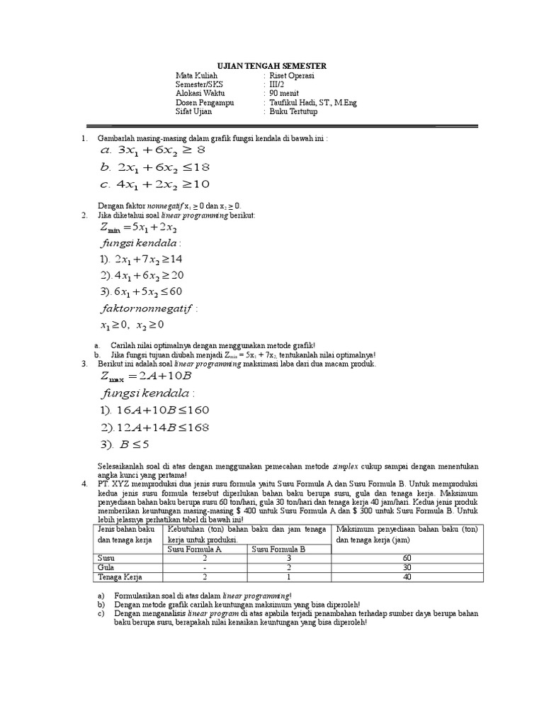 Contoh Soal Linear Programming Metode Grafik Minimasi Contoh Soal Terbaru from imgv2-2-f.scribdassets.com We did not find results for: Contoh soal metode simpleks minimasi. Maybe you would like to learn more about one of these? Check spelling or type a new query.